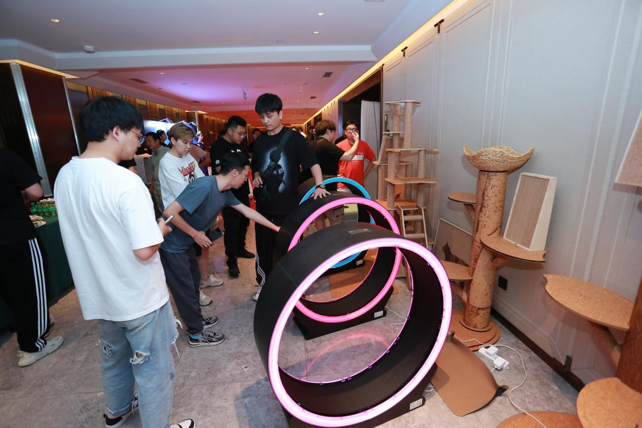 全球首创的ABS宠物智能跑步机毫无疑问是本场的重头戏,高颜值和强创新的特点,一出场就收到全场掌声。该产品采用新型材料 ,具有全球独家的双滚筒跑道设计,底座稳固,更静音,同时设计灯光炫酷跑道,可连接APP记录猫咪运动,真正的潮酷智能单品。